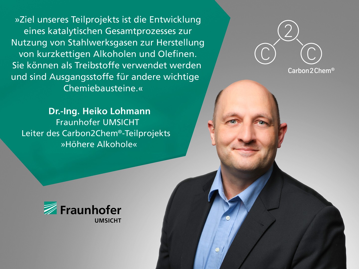 In der zweiten Projektlaufzeit von L-IV »Höhere Alkohole« soll ein katalytischer Gesamtprozess zur direkten Umsetzung von aufbereitetem Kuppelgas zu kurzkettigen Alkoholen, Olefinen und synthetischen Kraftstoffen entwickelt und zur Demonstrationsreife geführt werden. Für das anfallende Produktgemisch werden Perspektiven und Optionen für eine marktorientierte Aufarbeitung ausgearbeitet.
