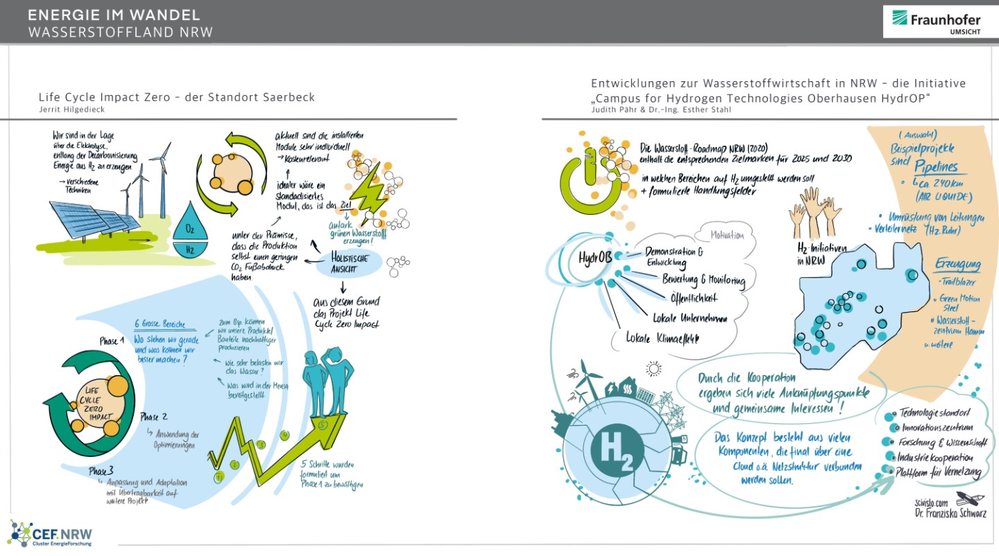 Die Frage, was die Initiative »Campus for Hydrogen Technologies Oberhausen HydrOB« erreichen möchte, beantworteten Judith Pähr von MAN Energy Solutions SE und Esther Stahl in ihrem gemeinsamen Vortrag: Partner aus Industrie, Forschung und Kommune verknüpfen ihr Know-how und ihre Kompetenzen, um die Umsetzung einer Wasserstoffwirtschaft voranzutreiben. »Gemeinsam wollen wir Wasserstofftechnologien in die Anwendung bringen und haben dabei Demonstration & Entwicklung, Bewertung & Monitoring, Öffentlichkeit, lokale Unternehmen und lokale Klimaeffekte im Blick«, so Judith Pähr. Die nächsten Schritte der Initiative: Entwicklung neuer Demonstrationsvorhaben und die Konzeptentwicklung für ein Kompetenzzentrum in Oberhausen, das u.a. eine Wasserstoffinfrastruktur sowie Räumlichkeiten für Forschungs- und Entwicklungstätigkeiten bereitstellt. Unternehmen und Organisationen, die sich daran beteiligen wollen, sind herzlich zur Mitarbeit eingeladen, betonten die Referentinnen.