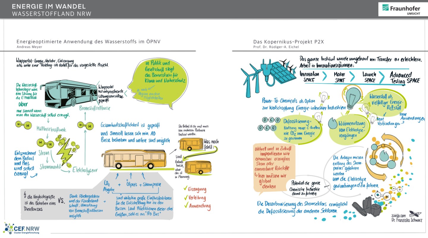 Zum Abschluss der Veranstaltung stellte Prof. Rüdiger-A. Eichel vom Institut für Energie- und Klimaforschung am Forschungszentrum Jülich das Kopernikus-Projekt P2X vor. Im Fokus: die Entwicklung von Technologien und Prozessen, um erneuerbare Energien umzuwandeln und zu speichern. »Dabei geht es uns neben der Produktion von grünem Wasserstoff auch um die Defossilisierung anderer Sektoren«, erklärte der Wissenschaftler. Ein Beispiel: die Frage, wie sich unvermeidbares CO2 – z.B. aus der Zementindustrie – in Ausgangsstoffe für die Chemie umwandeln lässt.