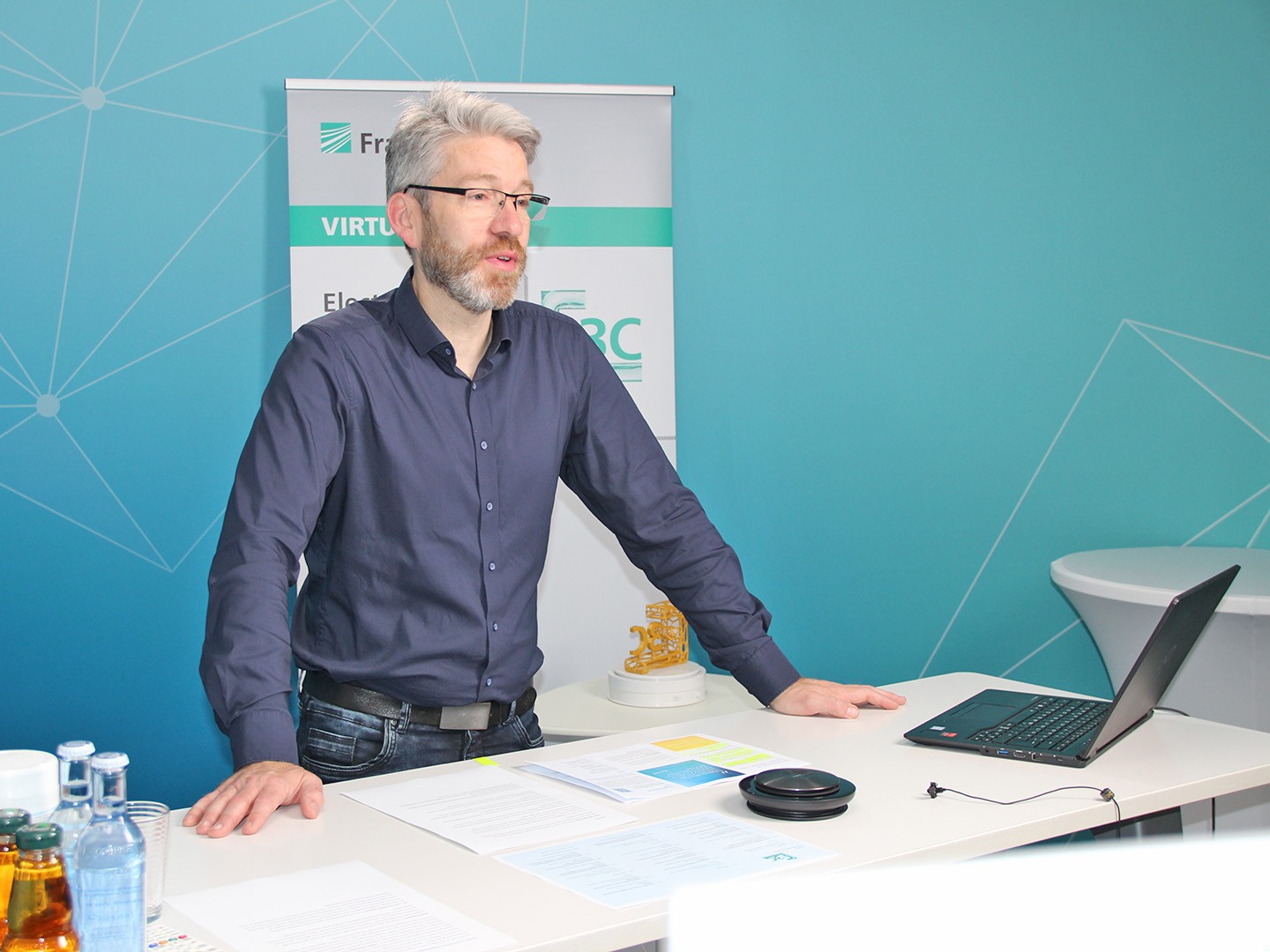 Im Anschluss an die Keynote startete die erste Session der virtuellen Veranstaltung – moderiert von Dr. Michael Joemann, Gruppenleiter Komponentenentwicklung und -fertigung in der Abteilung Elektrochemische Energiespeicher am Fraunhofer UMSICHT. Nils Weber und Tobias Harhues von der RWTH Aachen warfen einen Blick auf zwei Ansätze zur Herstellung poröser Elektroden mit großer Oberfläche, um die Beschränkung des Massentransports in elektrochemischen Reaktoren zu überwinden. André Kayser vom Zentrum für Brennstoffzellentechnik ZBT GmbH setzte sich mit der Steigerung von Ressourceneffizienz und Nachhaltigkeit von Verbund-Bipolarplatten auseinander. Dr. Fernando Arenas von der TU Clausthal sprach über Massentransporteigenschaften 3D-gedruckter Elektroden in Abhängigkeit der Elektrolytgeschwindigkeit.