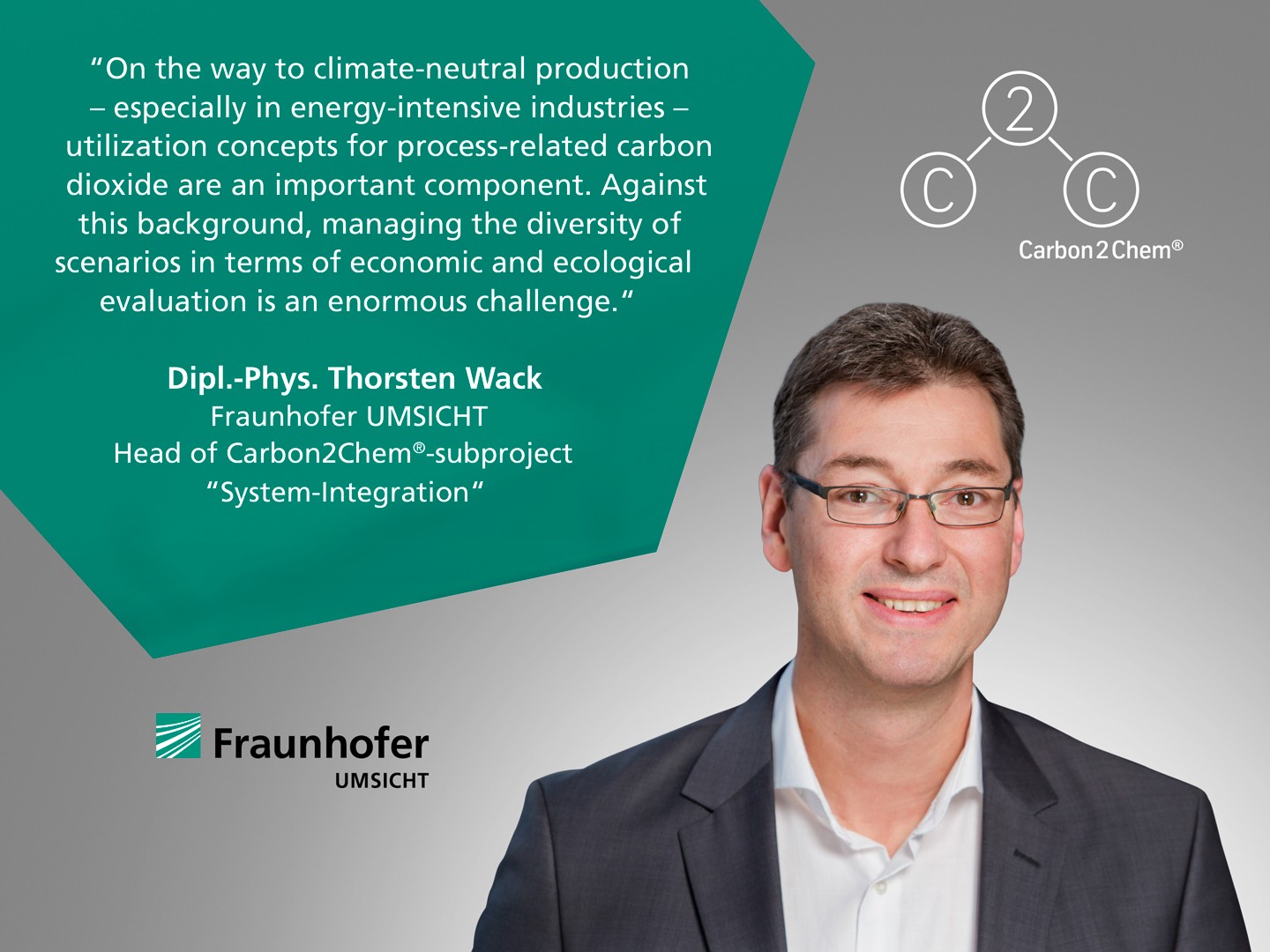 Fraunhofer UMSICHT was involved in bringing together the results of the individual subprojects into an overall system within the subproject L0 “System Integration” in the first four years of Carbon2Chem®. As part of this, evidence was provided with regard to technical feasibility, cost-effectiveness, and sustainability. A further central element of the subproject was the view of the planned cross-industrial network. A simulation platform was set up for the entire system during the first project phase, which allowed processes to be considered at different levels of detail. The platform makes it possible to link up process models from various simulation systems. These simulations provided the other subprojects with important aspects in terms of shaping the product selection, process logistics, and process control. Organizationally and in terms of content, Fraunhofer UMSICHT supported the collaboration across all subprojects with topic-related communities.