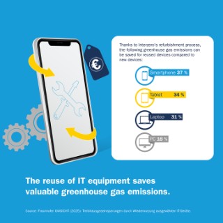 Fraunhofer UMSICHT investigated for Interzero how sustainable the use of used IT equipment is. The results show that giving smartphones, tablets and other devices a second life can reduce greenhouse gases by up to 37 percent.