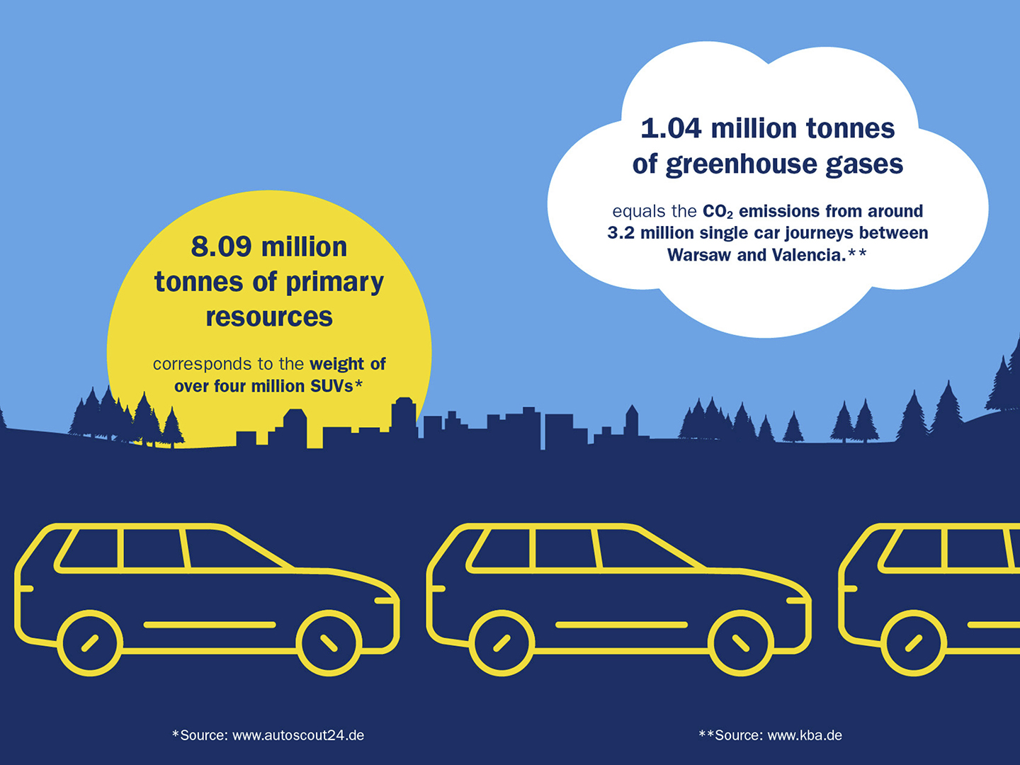 Fraunhofer UMSICHT has been investigating the environmental impact of recycling and circularity for Interzero for over 15 years. In the study "resources SAVED by recycling 2024" published today, the circular economy service provider Interzero announces the results for 2024: Around 1.94 million tons of recyclable materials were recycled, saving 8.09 million tons of primary resources. This corresponds to the weight of over four million SUVs.* At the same time, Interzero's recycling activities avoided a total of 1.04 million tons of greenhouse gas emissions. This corresponds to the CO₂ emissions caused by around 3.2 million single trips by car between the Interzero locations in Warsaw and Valencia.**